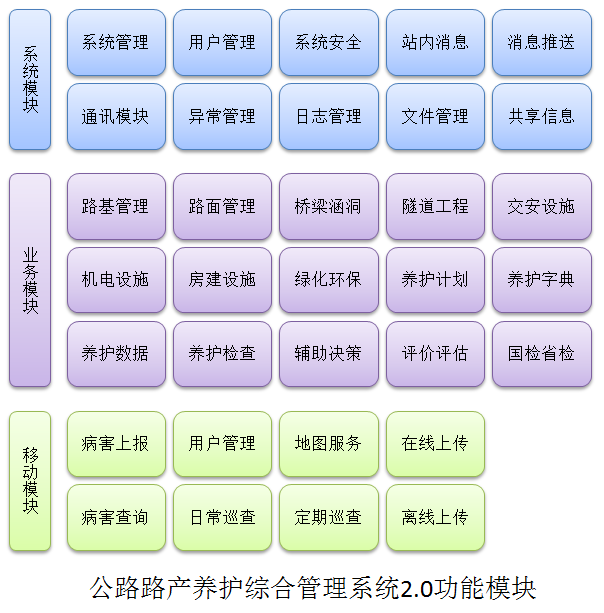 本系统遵循《公路养护技术规范》、《公路技术状况评定标准》等国家与部颁规范,建立养护数据集中管理、路段病害及时发现、养护过程有效控制、管养人员科学考核的综合管理体系,推动高速公路养护管理工作的信息化与标准化工作,为养护管理提供辅助决策支持,并为国检、省检积累完善的养护管理资料。