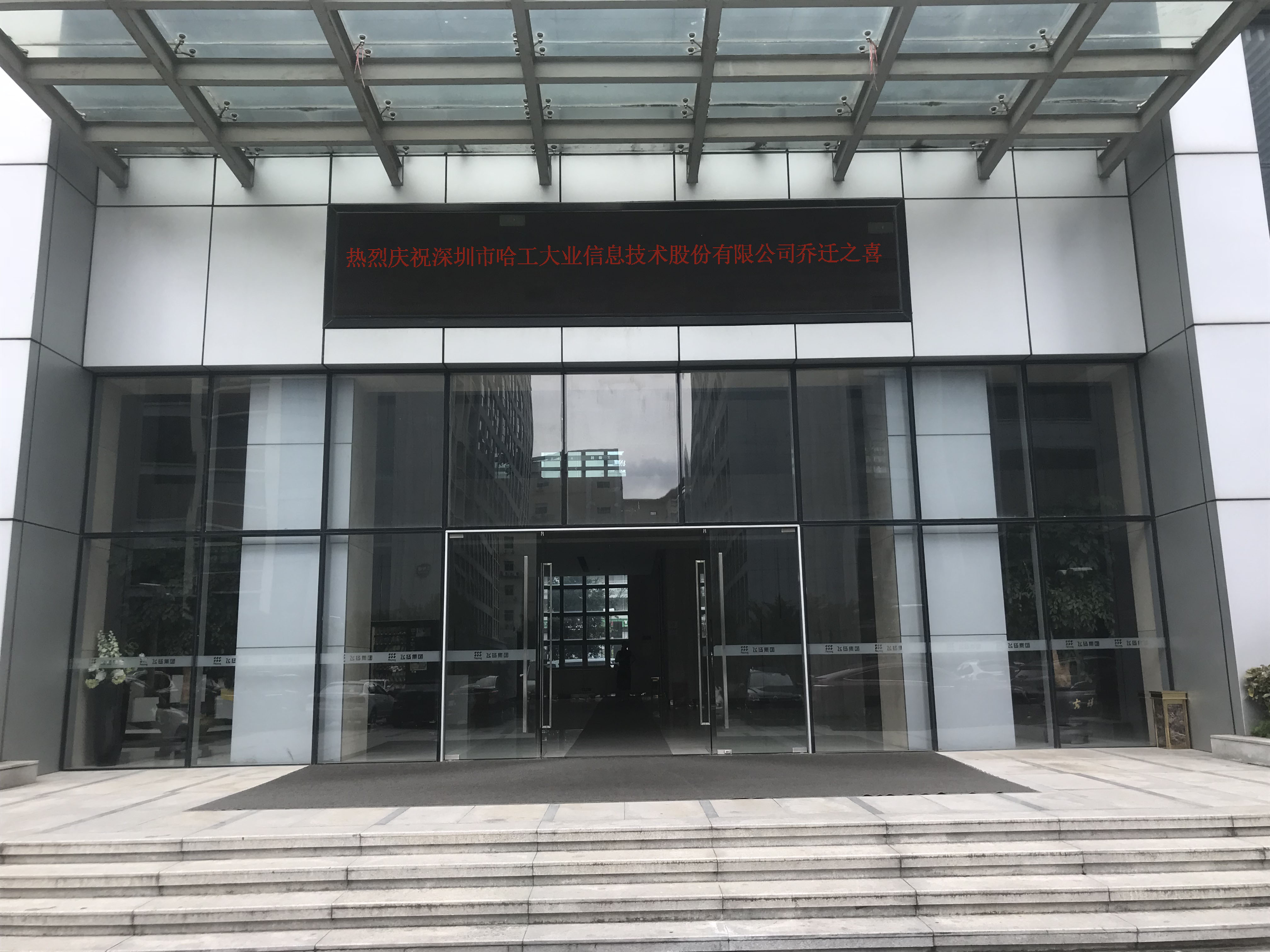 2019年4月1日,深圳市哈工大业信息技术股份有限公司深圳总部经营地址正式乔迁至:深圳市宝安区昌隆路飞扬科技大厦B栋7楼。