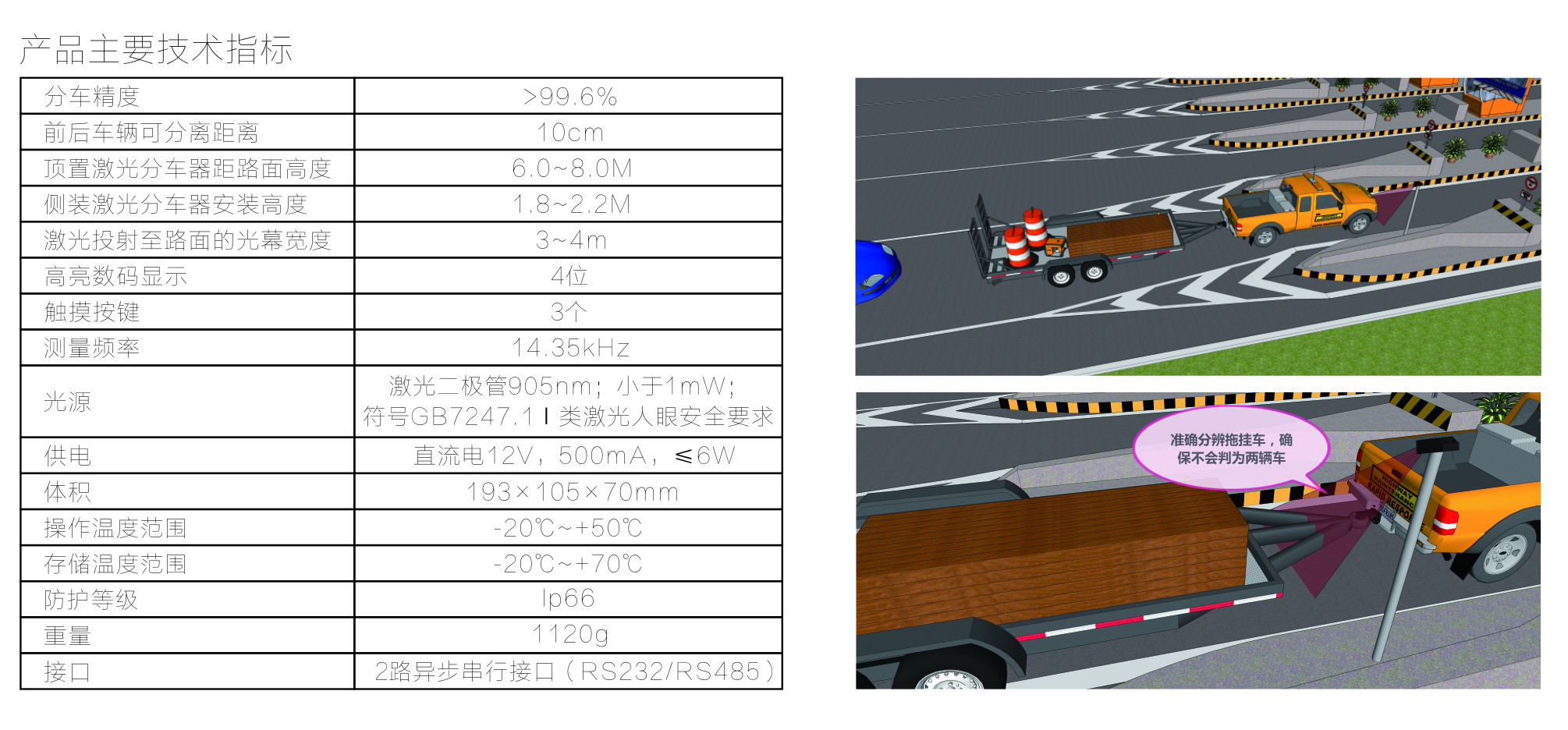 - 优异的扩频技术,发丝级物体反馈,确保拖挂车不会判为二辆车;