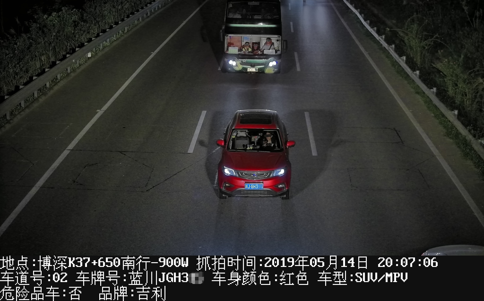 (2)300万像素车牌图像识别设备抓拍效果(夜间)